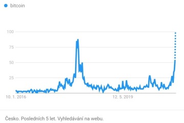 Graf týdne: četnost vyhledávání slova bitcoin v ČR, zdroj: Google Trends